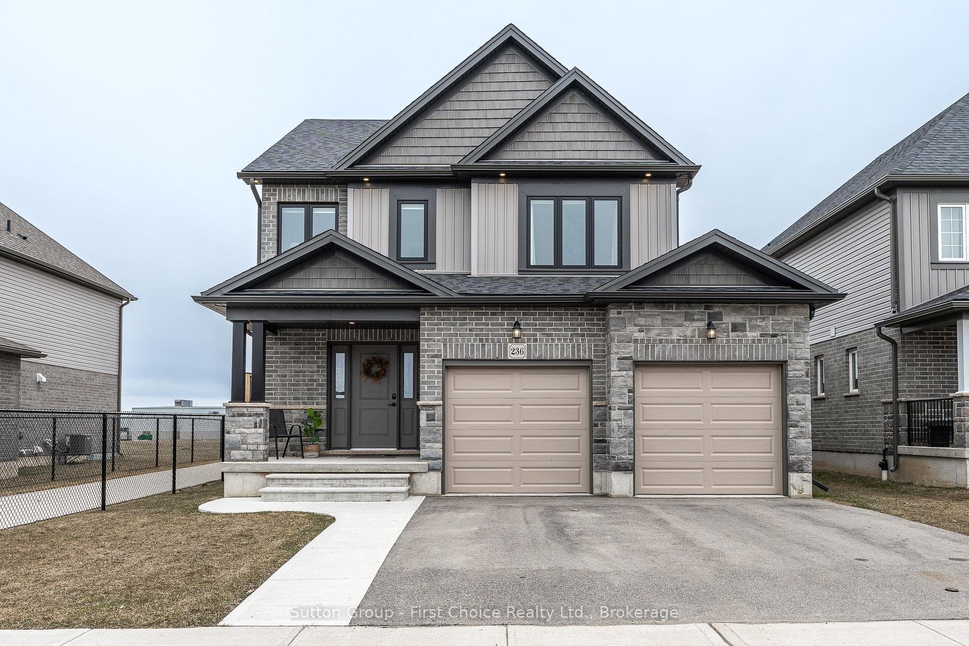 Welcome to 236 Bradshaw Drive, Stratford - where modern living meets comfort, style, and upgrades. Situated in the desirable Avon Ward, this move-in ready Earth Park home offers a beautifully designed layout just steps from a future park, the Stratford Rotary Complex, Stratford Farmers' Market and nearby schools. The open-concept main floor is bright and airy, featuring a beautifully updated kitchen with natural stone countertops, stylish cabinetry, a new modern backsplash and seamless flow into the dining and living spaces, perfect for everyday living and entertaining. Large windows with upgraded black exteriors enhance the home's curb appeal while flooding the interior with natural light. Upstairs, the spacious primary suite offers a walk-in closet and a beautifully finished 3-piece ensuite with a large walk-in shower and quartz countertops, designed with a clean, modern aesthetic. Two additional generously sized bedrooms, a full 4-piece bathroom, and convenient second-floor laundry complete the upper level. The unfinished basement presents incredible potential, complete with a bathroom rough-in and all the space needed to create a rec room, home gym, or future in-law suite. Step outside to a fully transformed exterior, featuring an impressive large stamped concrete patio, new concrete walkways, extended front steps, and an 8' fully fenced yard with two thoughtfully placed gates. Additional highlights include a Pinehaven shed, upgraded exterior pot lighting, insulated garage doors and hot tub electrical rough-in. This is the turnkey home you've been waiting for. Contact your Realtor today to book your private showing.