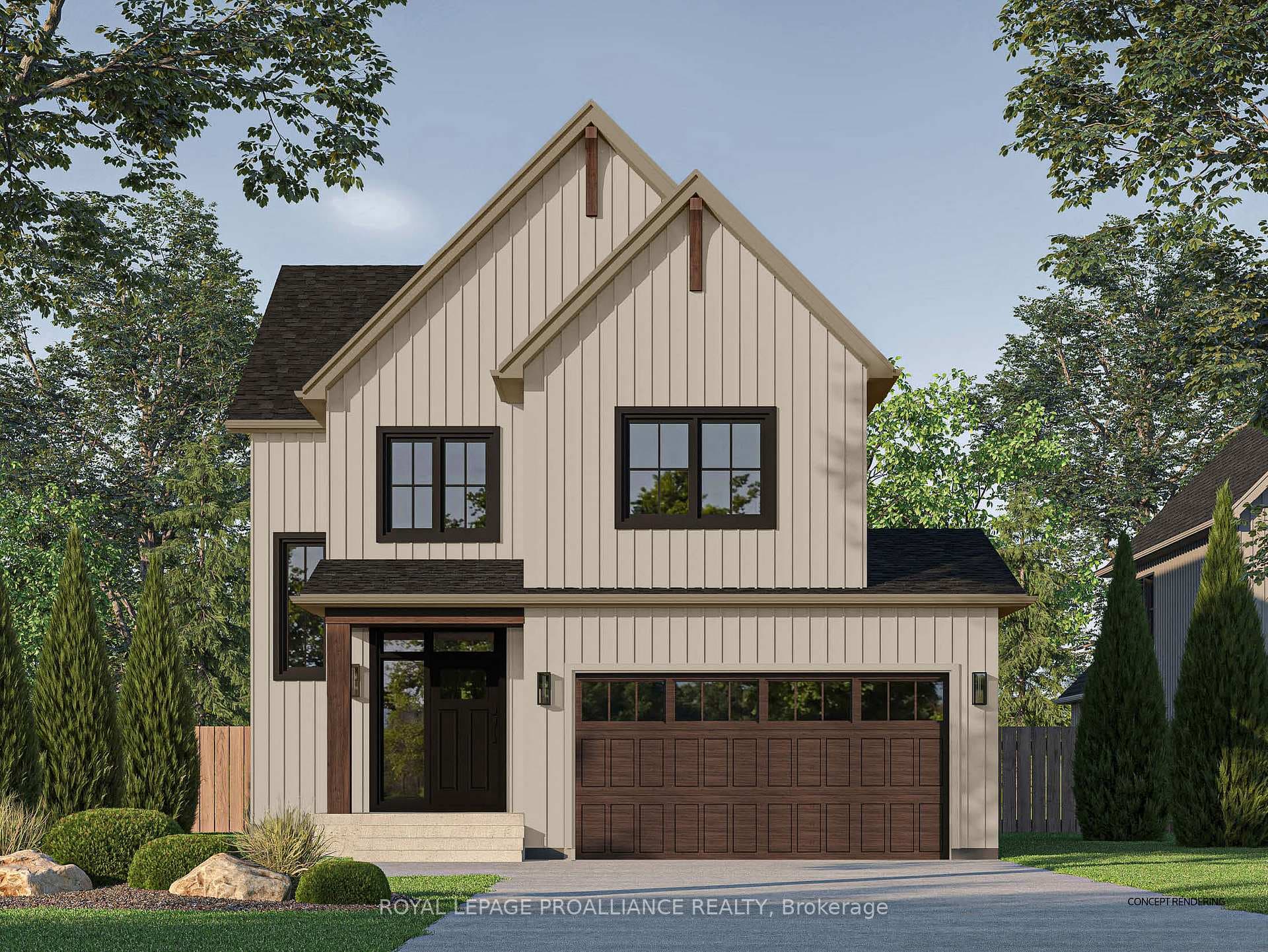 Nestled in the quaint village of Colborne and crafted by Fidelity Homes, this exquisite modern farmhouse combines contemporary elegance with rustic charm. Ideally located just minutes from downtown and 5 minutes south of the 401, this 2,391 sqft, 2-storey detached home boasts 4 bedrooms, 2.5 bathrooms, and thoughtful touches to enhance your living experience. Step into a private foyer with a convenient closet for all your storage needs. The main hallway leads to the heart of the home-a bright, open-concept kitchen, living, and dining area designed for effortless entertaining and family gatherings. A sliding door from the living room opens to a spacious back deck, perfect for outdoor relaxation. The main floor also features a mudroom with a second closet for additional storage, conveniently located off the 2-car garage entry. A powder room provides easy access for guests and family. The upper level includes three generously sized bedrooms, a flex space ideal for a home office or playroom, and a well-appointed primary suite featuring a large walk-in closet and a luxurious ensuite bathroom. A full bathroom and a conveniently located laundry room complete this family-friendly floor plan. This home comes packed with quality finishes including: Maintenance-free, Energy Star-rated North Star vinyl windows with Low-E-Argon glass; 9-foot smooth ceilings on the main floor for a spacious, airy feel; Designer Logan interior doors with sleek black Weiser hardware; Craftsman-style trim package with 5 1/2baseboards and elegant casings around windows and doors; Premium cabinetry; Quality vinyl plank flooring; Moen matte blackwater-efficient faucets in all bathrooms; Stylish, designer light fixtures throughout & a 7 Year Tarion New Home Warranty