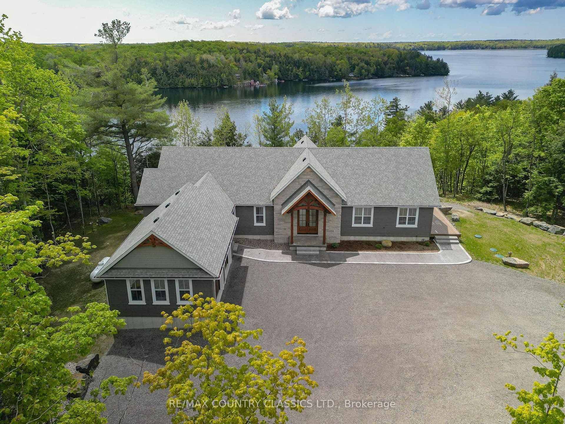 Luxury Lakeside Living at Chandos Lake Estates. Welcome to your dream retreat on the pristine shores of Chandos Lake. Nestled within the exclusive Chandos Lake Estates, this brand-new five-bedroom home offers the perfect blend of modern elegance and natural beauty. Perched on an elevated lot, the property boasts breathtaking panoramic views of the lake, with expansive windows and multiple outdoor living spaces designed to capture every sunrise and sunset. The thoughtfully designed layout features spacious, light-filled interiors, high-end finishes, and seamless indoor-outdoor flow--ideal for both entertaining and quiet relaxation. The gourmet kitchen opens to a grand living area with vaulted ceilings and a stone fireplace, while the primary suite offers a private sanctuary with lake views, a spa-inspired ensuite, and walk-in closet. Four additional bedrooms provide ample space for family and guests. Step outside to enjoy excellent waterfront access, complete with a private dock, deep swimming water, and plenty of space for boating and lakeside activities. Whether you're hosting summer gatherings or enjoying peaceful mornings by the water, this property delivers an unparalleled lakeside lifestyle. Located just minutes from local amenities yet surrounded by nature, this is a rare opportunity to own a slice of paradise in one of North Kawartha's most sought-after communities.