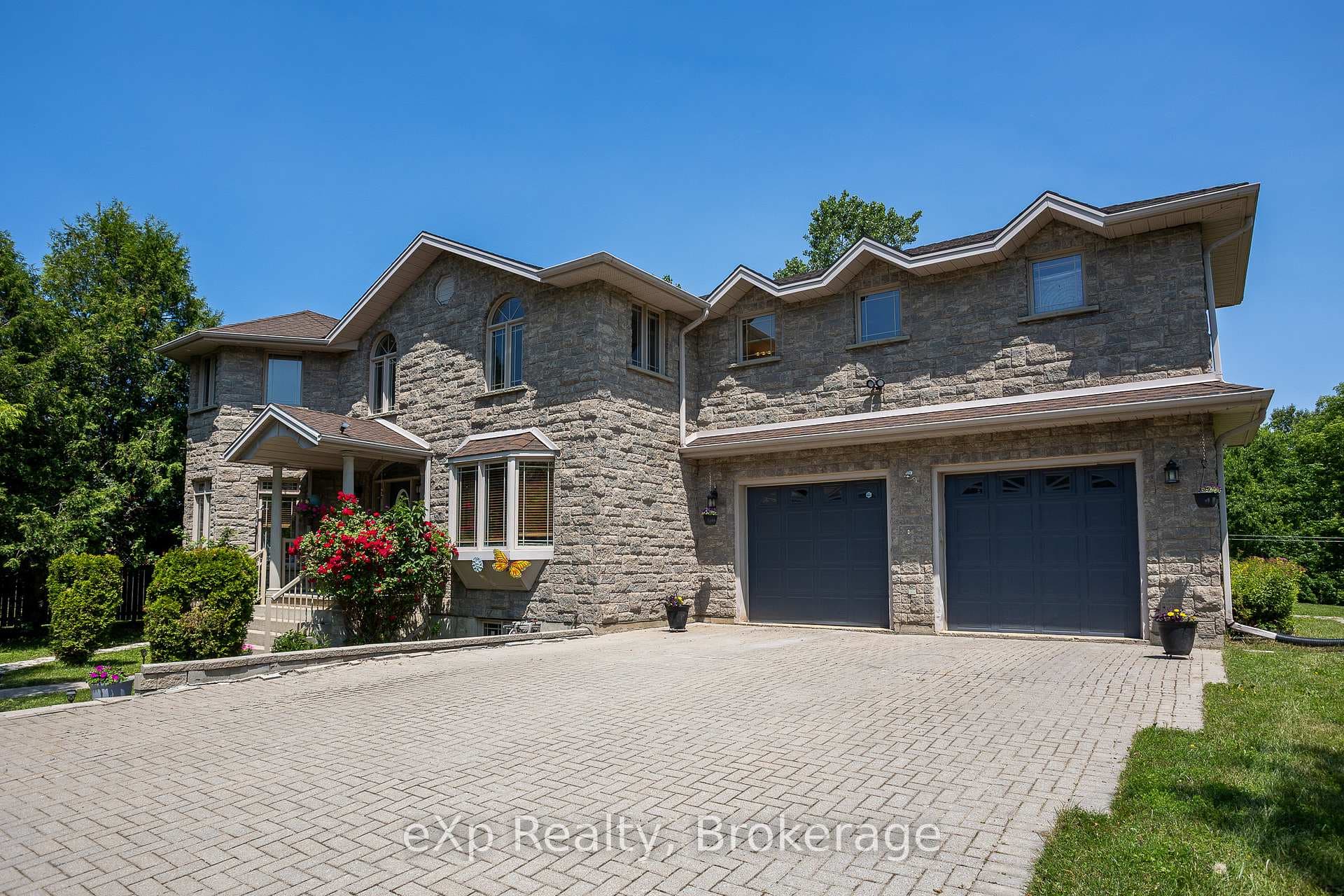 This spacious stone home offers over 3,200 sq ft of finished living space, ideal for large families or multi-generational living. The main floor features a grand foyer with vaulted ceilings, a powder room, and a striking solid maple staircase that sets the tone for the quality throughout. You'll find an inviting family room filled with natural light, a formal living/dining area perfect for gatherings, and a large custom kitchen with solid maple cabinetry, granite countertops, built-in appliances including a gas cooktop and double wall ovens, a center island with bar-top seating, and a bright breakfast area with access to the back deck. Maple hardwood and tile flooring run throughout both the main and second levels. Upstairs, there are five spacious bedrooms and three full bathrooms, including a grand primary suite with a walk-through closet and 4-piece ensuite. The second floor also offers access to a rooftop patio with hot tub hook-up - an ideal spot to relax and unwind. The finished lower level includes a self-contained in-law suite with kitchen, 3-piece bath, laundry, living area, walk-out to a patio, and walk-up access to the attached double garage. The remaining lower level space is used for storage and a rec room, with potential for future finishing. With plenty of room for separation and privacy, along with generous shared spaces perfect for everyone to gather, this home is well-suited for a variety of living arrangements. Set on a quiet in-town street on nearly half an acre, with an interlocking stone driveway, large deck with retractable awning, and close proximity to all of Owen Sounds amenities, this home offers exceptional space, functionality, and timeless design.
